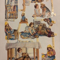 PZB 1291 a&b: Children's couple, teddy bear & handbag. GAMMAL HELKARTA bookmarks.1970s. 33x24