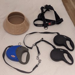 Dogman food bowl, Flexit dog leash x3 and Rukka harness size: XS