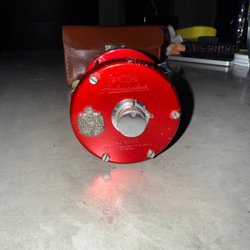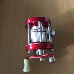 Red fishing reel ABU, Ambassadeur
