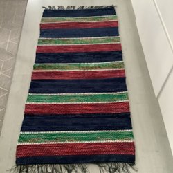 - Färgstarka trasmattor som ger en känsla av traditionellt svenskt hantverk och hållbarhet.