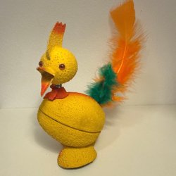 Sweet little Glasfigur - Yellow Chick with Rosette Miniature Figurine Easter Decoration Glass Animal
