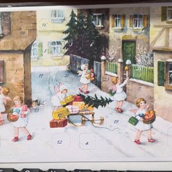 Antique 2 Christmas tablecloths runners paper from general store's warehouse early 1900s vintage NOS