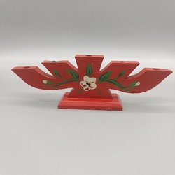 1 red wooden candlestick - red with flower - 5 small candles - Retro