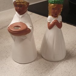 Two beautiful red wooden candlesticks - tulip-shaped Christmas candlesticks vintage Christmas lights