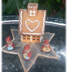 Gingerbread house candle lantern with elves and star cloth so beautiful to light up