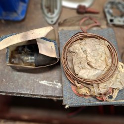 Kit for removing broken glow plugs and renovating threads, etc.