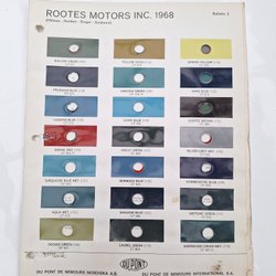 Rootes Motors Color Chart Dupont 1968-1971 Hillman Singer Sunbeam Humber Avenger