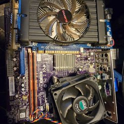 Motherboard with Intel Celeron E1200, ram and graphics card