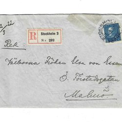 Registered letter Stamped Stockholm 3 1/3 1922
