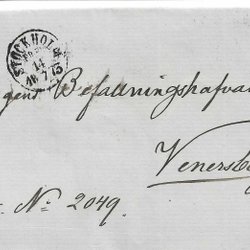 Pre-philatelic letter from Stockholm to Vänersborg 1873