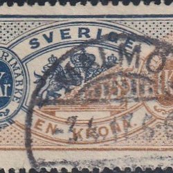 TJ24B Stora Tjänste T13 1 krona blue/brown cds. Malmö 1 3.4.11