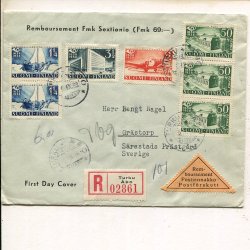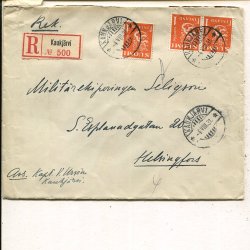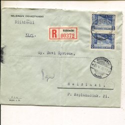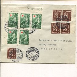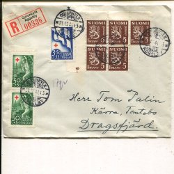 Finland Res Cross 2.50Mk+50p and Lion 5x5p on reg cover, Oulunkylä 21.3.1941
