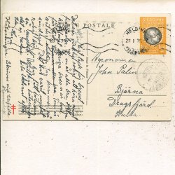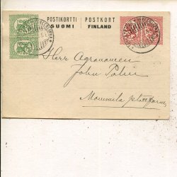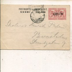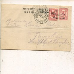 Finland 2x10p on 10+10p postal card, Tavastehus 10.6.1920