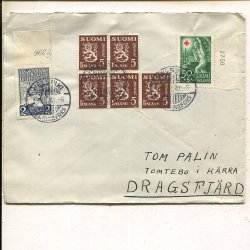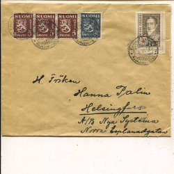 Finland Red Cross 2mk+Lions 50+25p on cover, Turku 24.8.1940