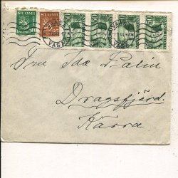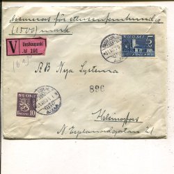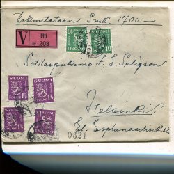 Finland Lion 4x1½Mk+2x40p on insured cover. Utti 4.7.1931