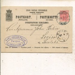 Finland 10p postal card, Pargas 24.4.1891 to Lovisa