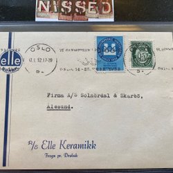 Letter from A/S Elle Keramikk with Olympic postage stamp and stamp 1952 Drøbak