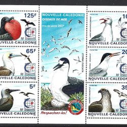 New Caledonia 1995 Birds 6vi block Singapore stamp exhibition