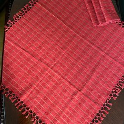 Red checkered tablecloth with fringes, Cotton