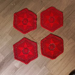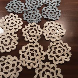 8 yellow crocheted coasters