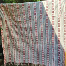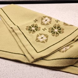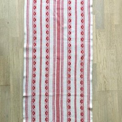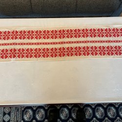 Old hand-woven and hand-embroidered table runner with fringes