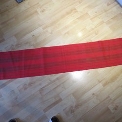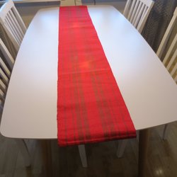 Red table runner with green stripes