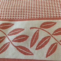 Fabric with beautiful print, yellow red brown on beige white base, length 205 br 140 cm