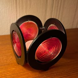 Candle holder/tea light holder in black metal with red glass