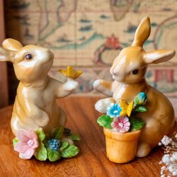 Glazed Resin Bunny Pair with Flowers and Butterflies