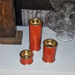 3 pcs retro brown/red Englesson candle holders brass, tealight candle holders