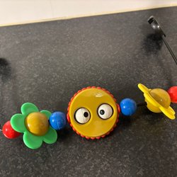 Electronic play arch for BabyBjörn-like baby bouncer with funny eyes