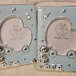 2st blue / turquoise. Photo frame in metal. Baby Happy time. See pictures.