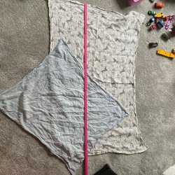 Fine muslin filters - 2 pieces, one light blue, one a bit larger with a gray animal pattern