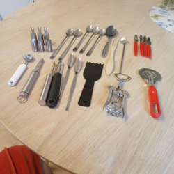 Genom att köpa köksutrustning second hand är det lättare att hålla koll på utgifterna, utan att för den sakens skull behöva snåla in på kvaliteten. I vårt utbud dyker det ständigt upp produkter i både begagnat- och nyskick från en mängd välkända varumärken. Alltifrån vackra skålar från Villeroy & Boch till hållbara formar från Höganäs och vassa knivar i damaskusstål från japanska tillverkare. Med vårt begagnade utbud är det möjligt att bygga upp en komplett uppsättning av kvalitativa hushållsprodukter i köket till ett riktigt bra pris. Nedan följer en lista över köksartiklar som går utmärkt att köpa second hand.