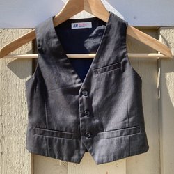 Stylish black waistcoat with pinstripes, size 98. Bröllop, fest