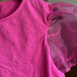 Lindex pink top with puff sleeves in organza, size M