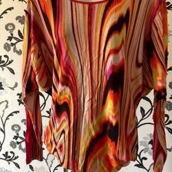 Rapido multicolored lovely top with ruching in the front, 3/4 sleeves and elastic at the bottom. Size L-XL