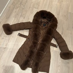 New Unused Jacket brown beige blue size 42 Padded jacket Patterned Winter jacket