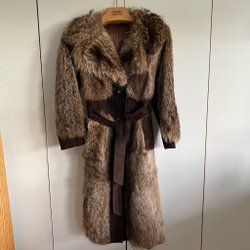 Minelli brown leather jacket with fur collar, size 44, vintage from the 80s in good condition