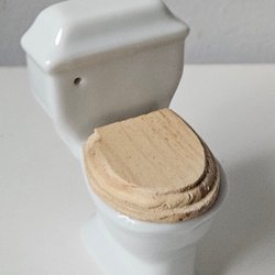 Miniature toilet with wooden seat for dollhouse