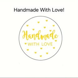30 small round stickers with gold print! Handmade With Love!