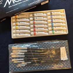 Oil paints and brushes