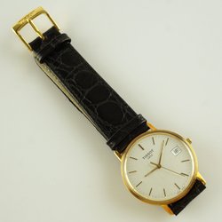 KLOCKA, 18K, Tissot, quartz, date, men's watch, engraving, Ø 33.6mm, needs battery replacement