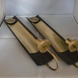 2 sconces, wall candle holders, vintage, brass, retro interior detail
