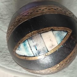 Indian Carved Wood, Bovine & Brass Studded Decorative Ball 9-10 cm