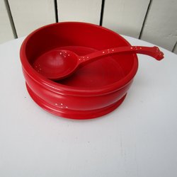 Red Wooden Bowl with Spoon