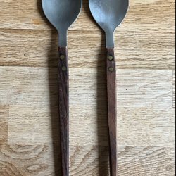 Beautiful salad servers. Teak? Danish? Stainless steel. Serving utensils. Vintage.