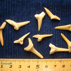 • Tandfossil från gigantiska hajar eller kanske från något ännu mer mystiskt djur