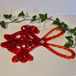 Red candle holder. Pig in glass, Monica Bratt for Reijmyre