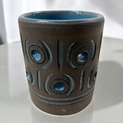 Ceramic Tealight Holder Brown/Blue Signed Sweden